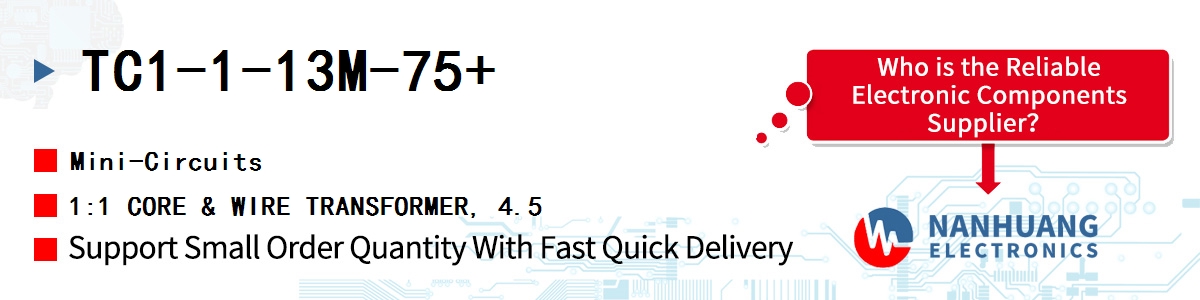 TC1-1-13M-75+, Mini-Circuits authentic parts in stock from Mini-Circuits authorized distributors, order today, can ship immediately.